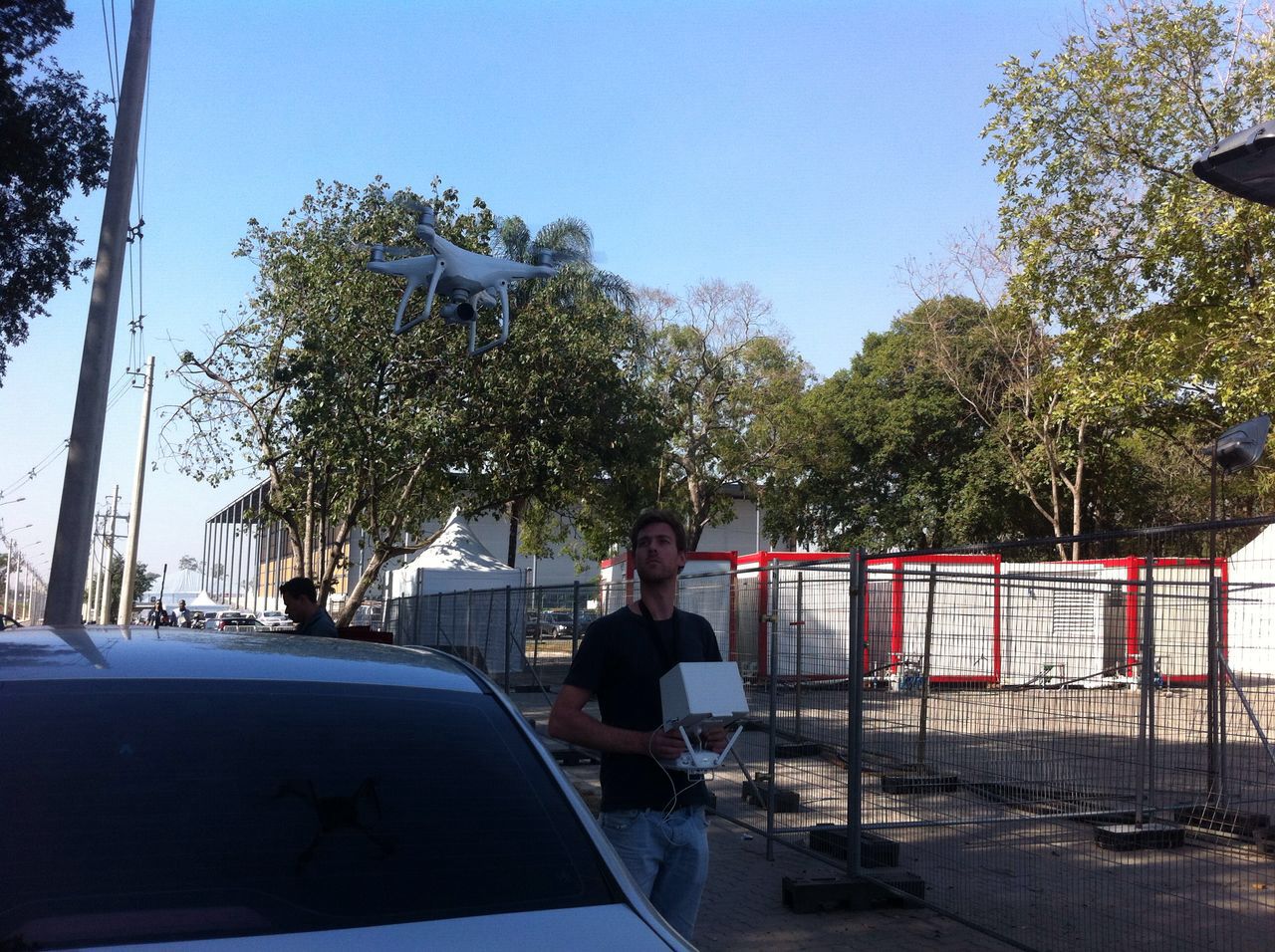 Notre drone peut voler jusqu'à 100 mètres du pilote et jusqu'à 120 mètres de hauteur. Techniquement, ses capacités de distance et d'altitude sont bien sont supérieures, mais la loi brésilienne encadre strictement l'usage des drones. Question vitesse, il peut aller jusqu'à 70 km/h.
