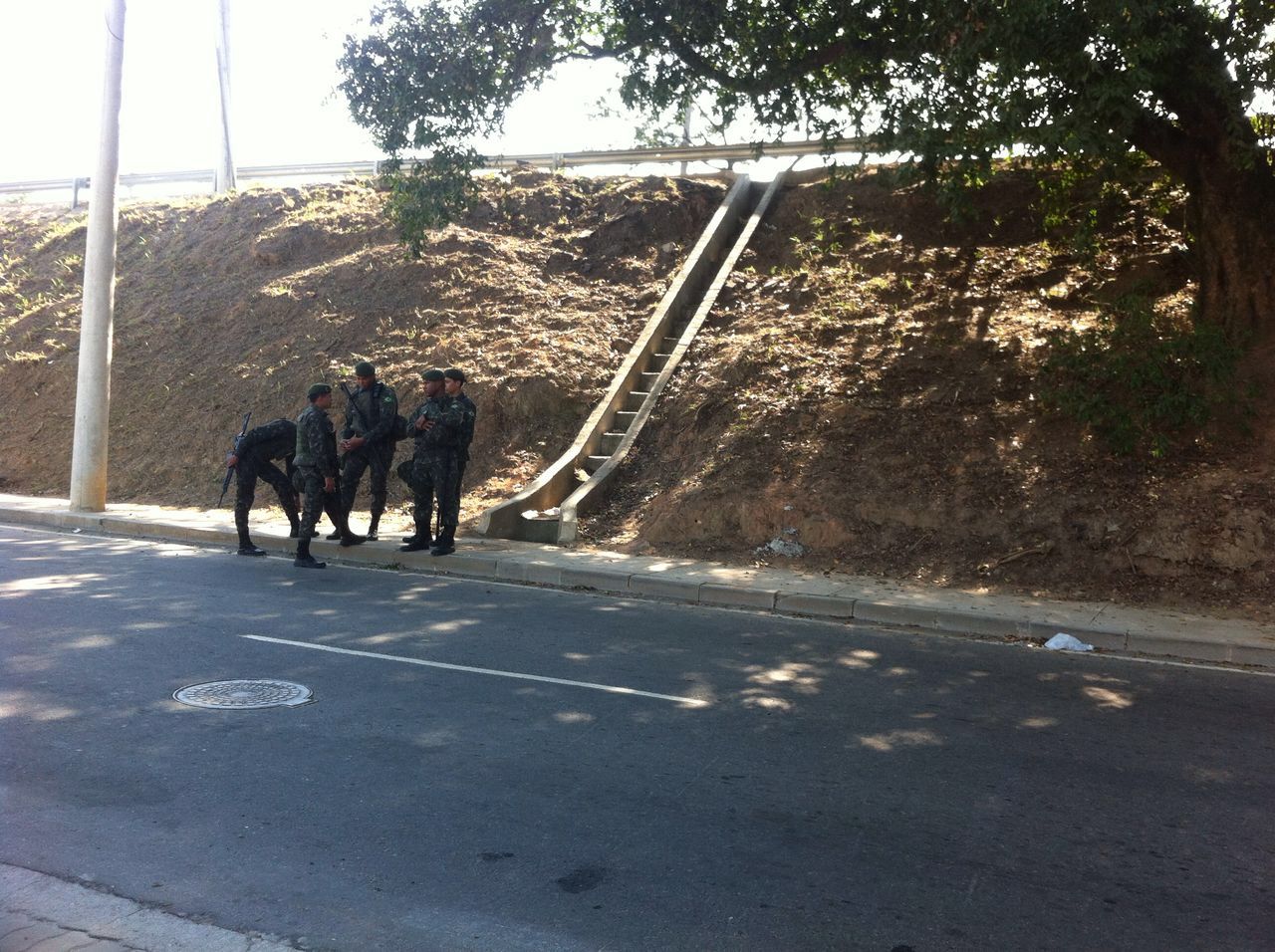 Aujourd'hui, nous tournons à Deodoro, l'un des 4 spots olympiques de la ville de Rio. C'est notamment là que se tiendront les épreuves de cyclisme, de canoë et de rugby. Le lieu est sous haute surveillance. Autour du Stade où se dérouleront les matchs de rugby, une centaine de militaires patrouillent.