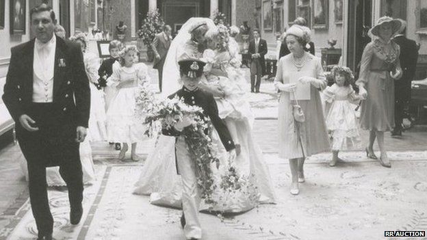 "Ces photos inédites ont saisis des instants sincères et spontanés de ce mariage de conte de fée" témoigne Bobby Livington, porte parole de la vente aux enchères. On y découvre la Princesse Diana, quelques heures après la cérémonie, entourée de ses demoiselles d'honneur et de la Reine Elisabeth II. D'autres clichés montrent le couple royal au balcon de Buckingham Palace ou encore la Reine d’Angleterre regardant la cérémonie à la télévision. Le mariage du Prince Charles et de Diana Spencer avait été suivi par plus de 750 millions de spectateurs à travers le monde. Il s'agissait à l'époque de l'événement le plus populaire jamais diffusé à la télévision. La vente aux enchères des photos se tiendra le 24 septembre à Boston.