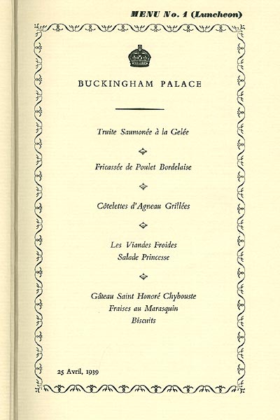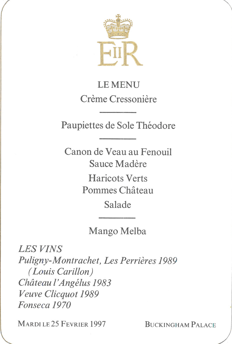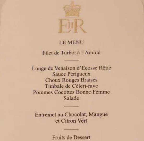 Jetez un coup d'œil à tous les menus rédigés en Français au Buckingham Palace !