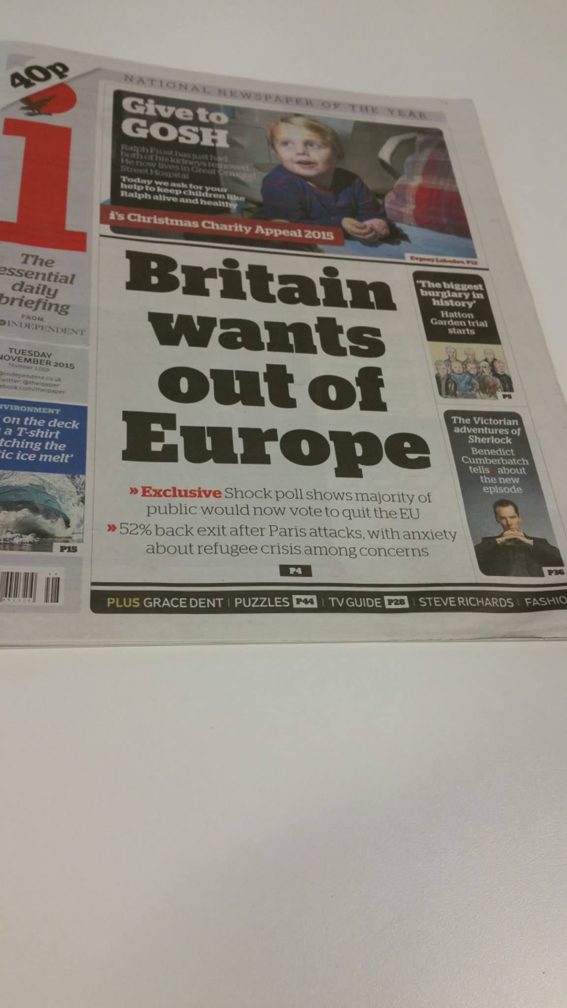 Depuis les attentats de Paris, c'est une majorité de Britanniques qui est désormais favorable au "brexit"... une enquête publiée par le très sérieux quotidien The Independent .