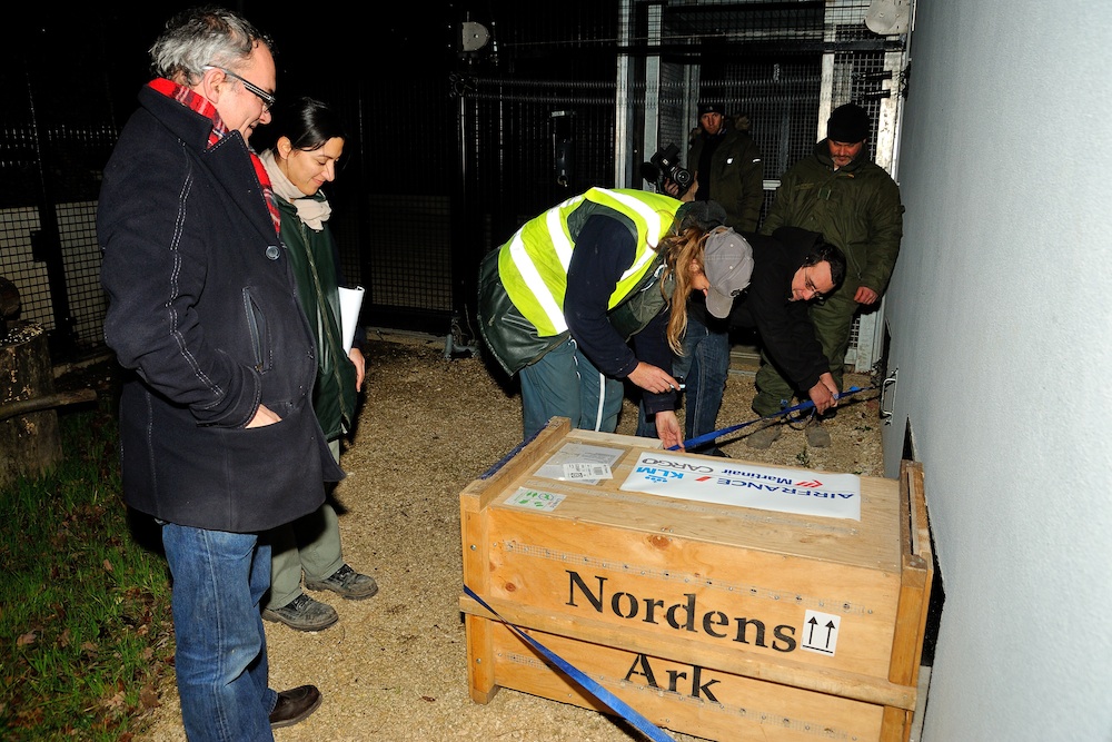 La femelle glouton, Niemi, est arrivée du zoo de Cotswold (Angleterre) quelques jours après lui. Pour le moment, les deux individus sont en contact visuel et olfactif. « On attend qu’ils s’habituent d’abord à leur pré-enclos et à la compagnie de l’autre avant la mise en relation directe, puis la sortie dans leur enclos définitif. Cela peut prendre encore quelques semaines » précise la curatrice.