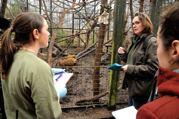 - Delphine Roullet identifie les babouins avec les équipes du zoo d’Edimbourg © F-G Grandin / MNHN